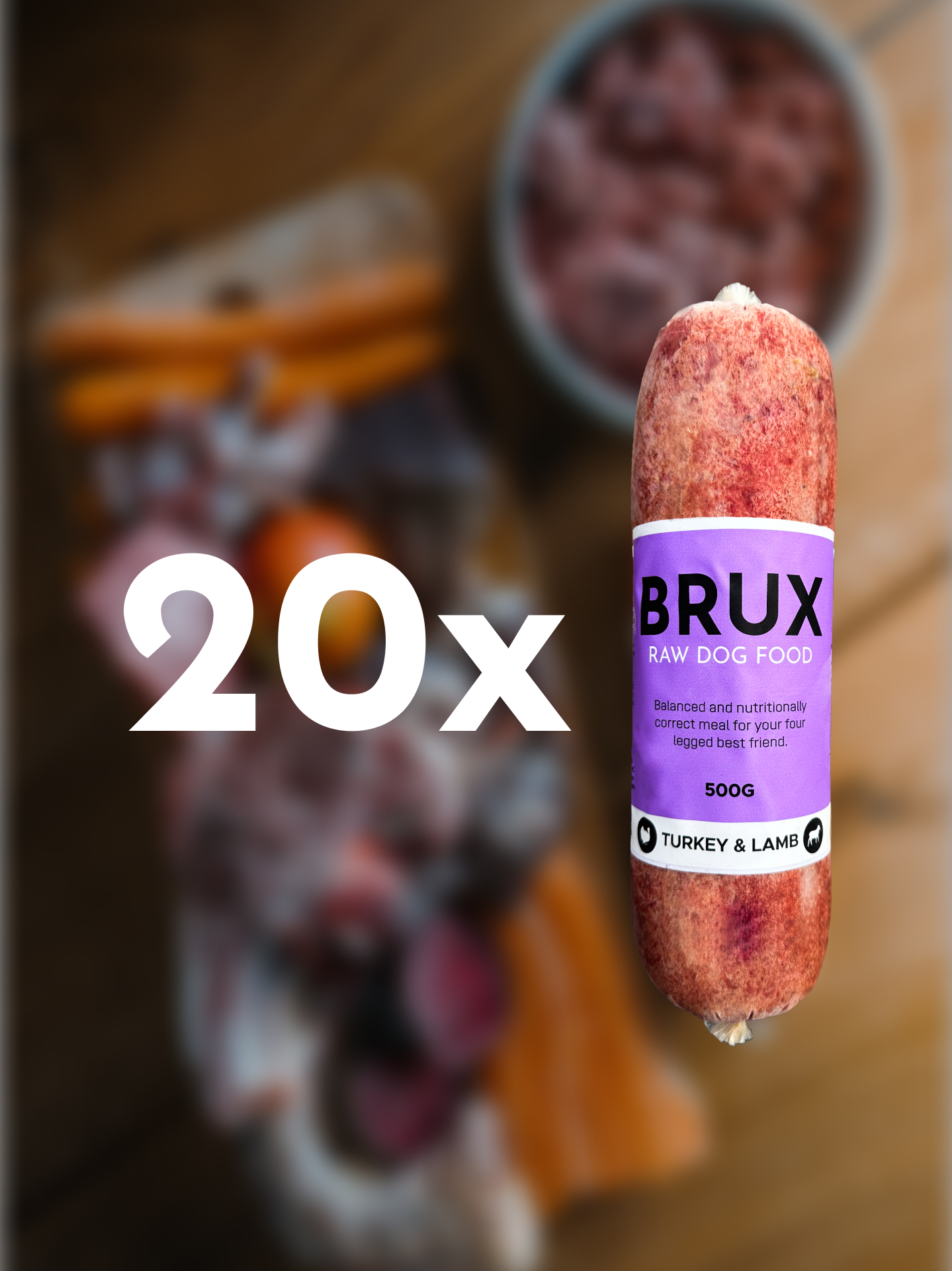 BRUX balanced raw dog food with turkey and lamb for all life stages.